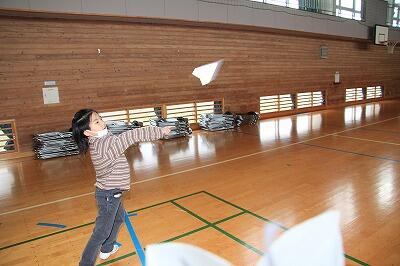 1年生が,図工の時間に紙飛行機を作って飛ばしました。