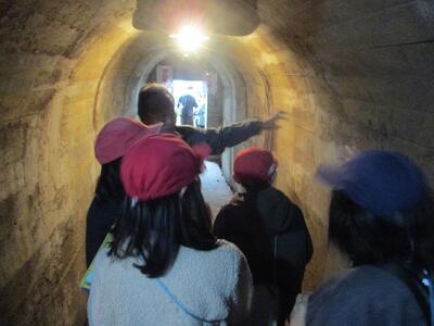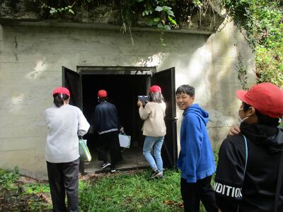 平和学習の一環として、神町の若木山防空壕見学へ行ってきました。