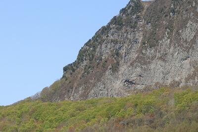 過日の低気圧通過に伴う突風で,校舎北側にある御衣黄桜〔ギョイコウザクラ〕が,倒れてしまいました。