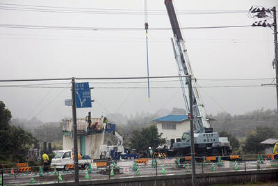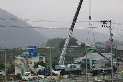 学校,グラウンド南側にある国道48号戦に架かっていた歩道橋が,10月4日,老朽化のために撤去されました。