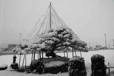 今日は,大雪になりました。本校のシンボル「希望の松」もご覧の通り。