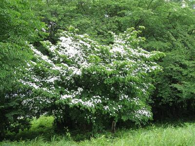 ヤマボウシの花は満開です。〔白く見えるのは花弁ではなく総苞片です。〕