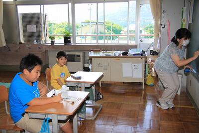 各学年の教室の様子です。2年生と3年生では夏休みの課題の提出を終えて,図書館で読書です。