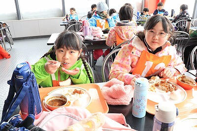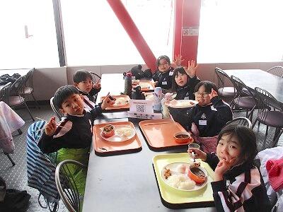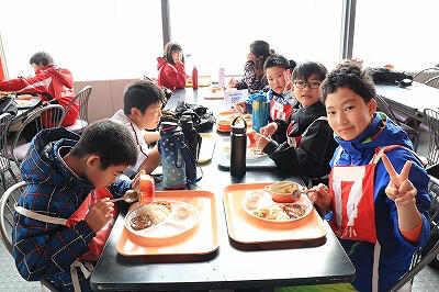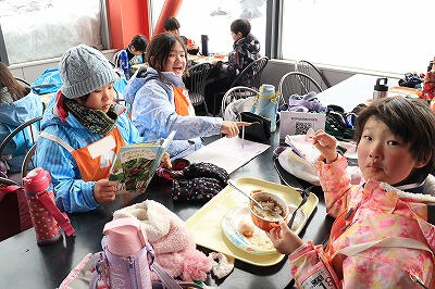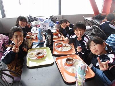 お昼ご飯は,ジャングルプラザのカレーライスです。デザートにあんまんが付きました。