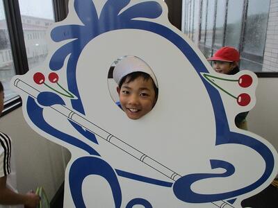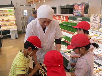 初めに、滝口さんから、ぶどうの品種や甘いぶどうの見分け方、ぶどう狩りの仕方などをお話しいただきました。「巨峰は、色が濃く黒っぽいものが甘い」 「ぶどうは上の方から熟していく」 「ぶどうを甘く大きく育てるには、いくつかの実を摘んで、実の数を減らしてあげる作業が必要」 など、ぶどうについて様々なことを教えていただきました。